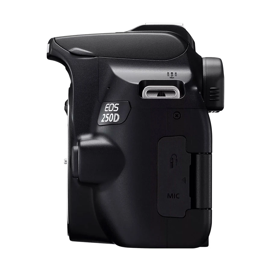 The Canon EOS 250D delivers stunning high-resolution photos and sharp 4K video in a compact DSLR body. It features Dual Pixel CMOS AF for fast and accurate autofocus in Live View, a vari-angle touchscreen for creative shooting angles and selfies, and a guided user interface ideal for learning photography. With built-in Wi-Fi and Bluetooth, Creative Assist modes, and powerful DIGIC 8 processing, it combines portability with advanced imaging performance.