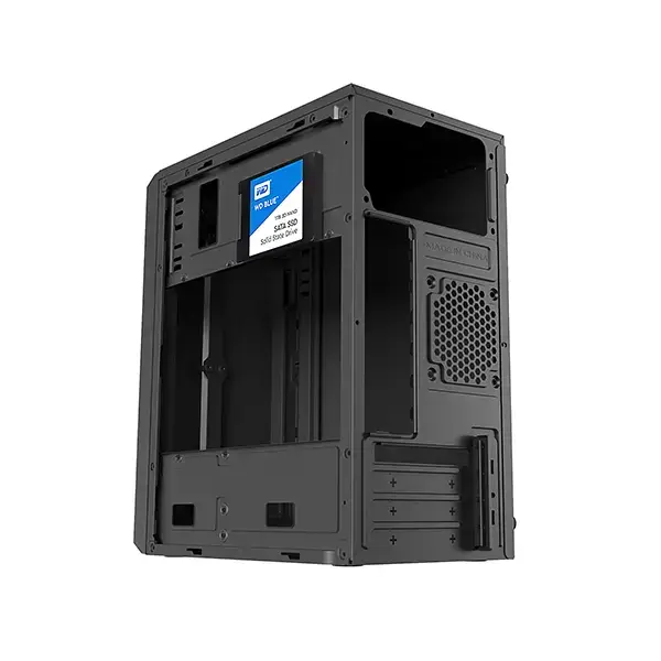 Golden Field 1715B Micro-ATX desktop case is a small yet durable solution for home and office use. A standard power supply that comes pre-installed is available with a 2-year PSU warranty for ease. The metal side panel offers strength, and the folded edge design offers secure mounting of internal components. The case features an 80mm rear fan for cooling and side panel holes for better airflow for enhanced CPU and GPU cooling. An LED strip offers a minimalist visual aspect to the design.