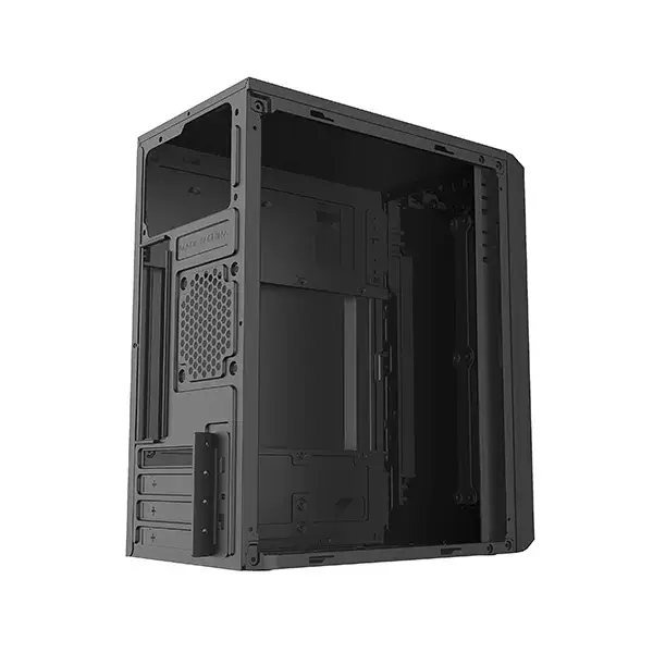 Golden Field 1718B Micro-ATX desktop casing is designed for reliable performance and efficient cooling. It comes with a pre-installed standard power supply and a 2-year PSU warranty, making it a practical choice for everyday computing. The metal side panel ensures durability, while the folded edge design allows safe installation of internal components. The casing includes an 80mm rear cooling fan and side panel openings to improve airflow for better CPU and GPU cooling.