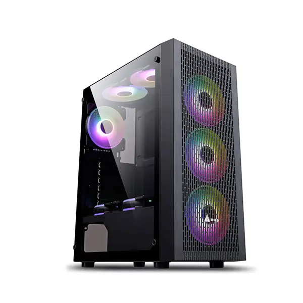 Description:Golden Field N95B ATX Gaming CasingGolden Field N95B ATX Gaming Casing is a practical choice for gamers looking for a reliable and functional case. With an ATX form factor, this gaming case provides ample space for components without unnecessary frills. The tempered glass left side panel adds a touch of style while allowing you to showcase your hardware. Equipped with a USB 3.0 port, USB 2.0 port, and HD Audio support on the front panel, accessibility is key. The pre-installed trio of 120mm ARGB fans ensures efficient cooling and adds a splash of color to your setup. The MESH front panel promotes optimal airflow, contributing to the overall cooling performance. |