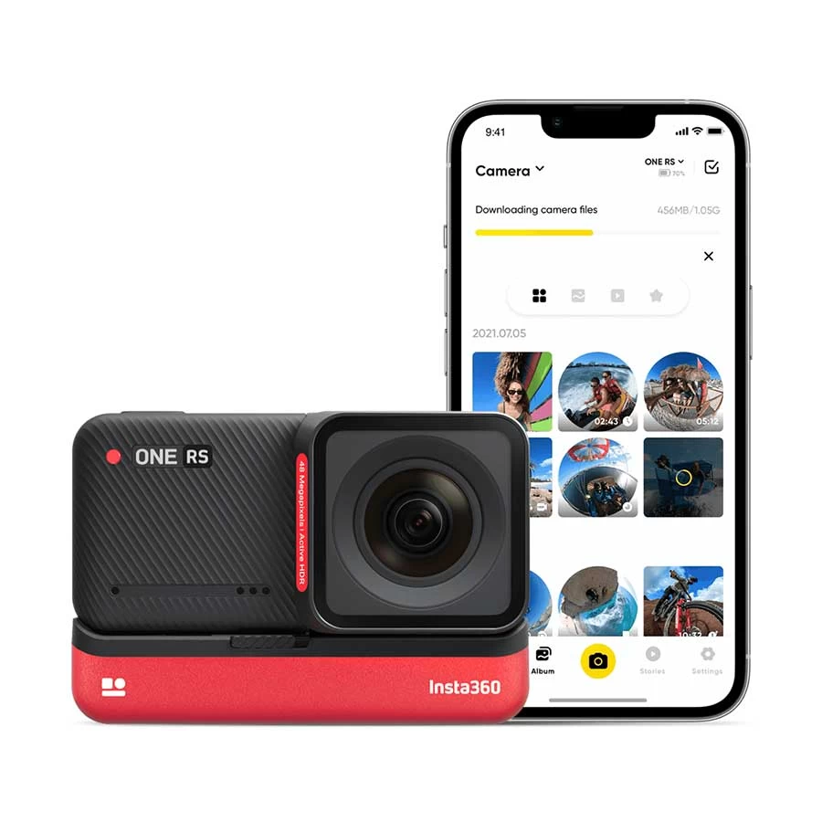 Additional Info The Insta360 ONE RS Twin Edition Camera is one of the key configurations of the modular ONE RS action camera system. The Twin Edition includes the Core module, 4K Boost Mod, the 360 Mod, and the necessary Battery Base that holds the modules together. When assembled with the 4K Boost Lens, the ONE RS can shoot 4K60 wide-angle action video and 48MP photos. With the 360 Lens, the ONE RS can shoot 5.7K 360 degree footage with creative effects like the Invisible Selfie Stick and 360 Degree reframing. Both lenses have FlowState stabilization and Horizon Lock. A 1" wide-angle lens, which captures 5.3K resolution video, is also available separately and can be swapped in.