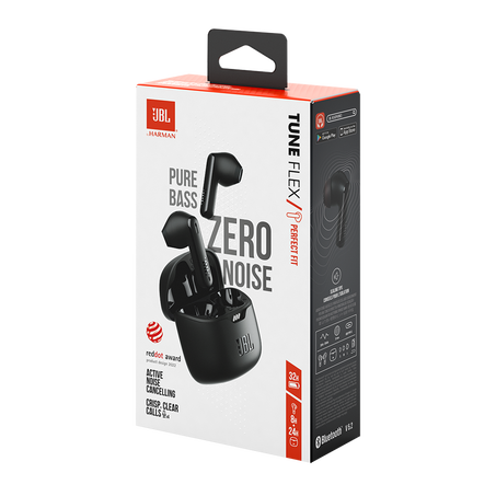 Take your day one song at a time with the JBL Tune Flex Noise Cancelling earbuds that put 32 hours of playtime in your pocket.