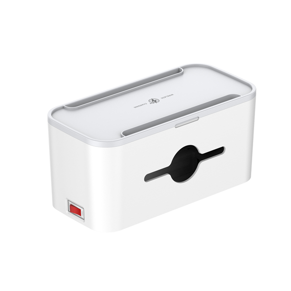 This smart power hub is housed in a sleek and sturdy storage box. The thoughtful design protects the outlets and cables from dust, accidental damage, and daily wear and tear. The storage box also provides a dedicated space for organizing small electronic accessories like cables, adapters, and USB drives, ensuring your workspace remains tidy and clutter-free. The integrated storage solution ensures that all your essential accessories are within reach, enhancing the overall functionality and organization of your workspace. The storage box design not only protects your devices but also helps keep your workspace neat and organized.